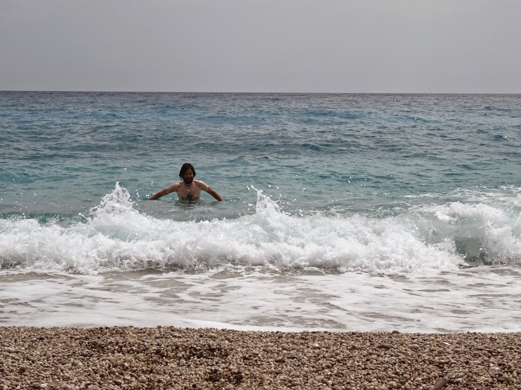 Später treffen wir uns am Strand wieder. Zur Feier des Tages gehen wir Pizza essen.